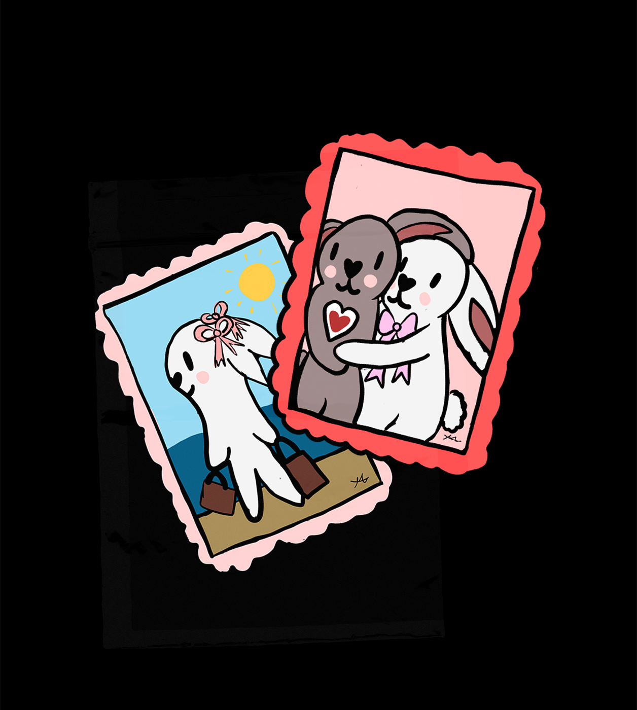 Stickers featuring two cute best friend bunnies going on an adventure.