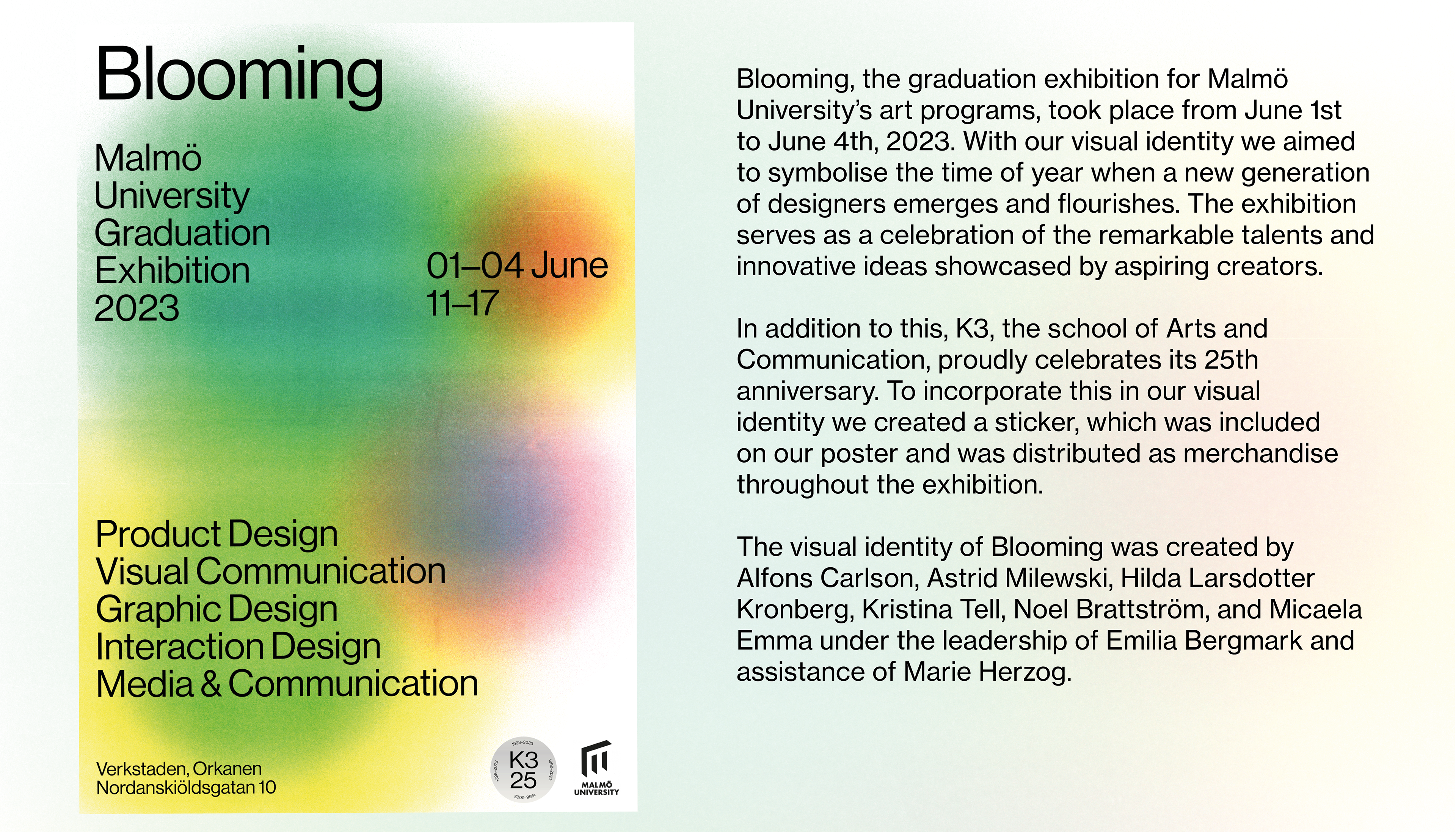 Blooming is an exhibition focusing on celebrating the remarkable designs and innovative ideas showcased by graduates of Malmö University 2023.